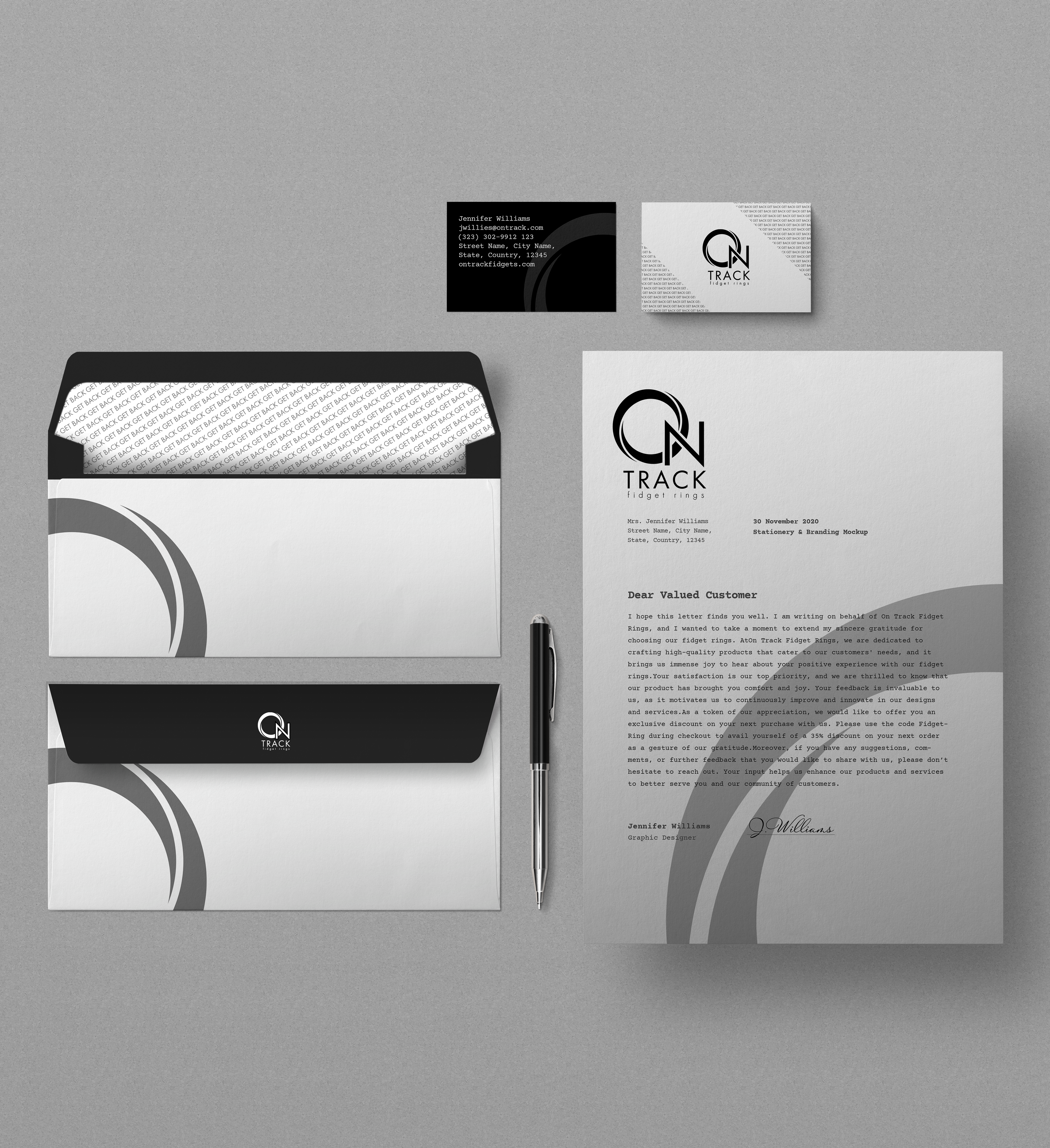 An animated advertisement and merchandise for a fictional fidget ring company specifically for college students with ADHD.